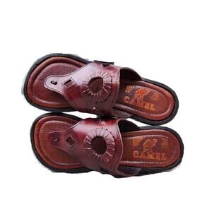NWOT: Handcrafted rich brown "Cleopatra" 100% high-quality genuine leather ancient sandals with a wide central T-strap / cut out geometric shapes / handstitched embellishments / thong style / platform wedge heel by Camel Sandals.
