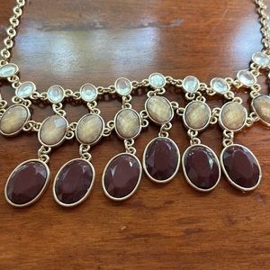 Cleopatra style necklace gold chain. Burgundy, tan and clear beads. Adjustable chain for different lengths. 18” long from clasp to hook. 3” extra of adjustable chain.
