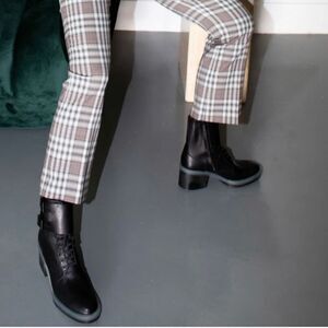 An elevated take on a rugged staple, these leather combat boots have a buckled ankle cuffs and rubber trim around the midsole.