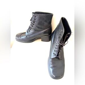 Clergerie Vintage Square Toe Black lace up Boots 1990s 8