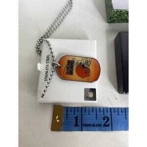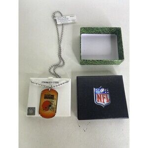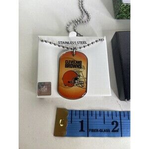 Up for grabs is a brand new Cleveland Browns Dog Tag Necklace Stainless Steel NFL Licensed with Gift Box. Never worn or used. Measurements Laying flat are included in photos, PLEASE compare them to your own for proper fit! Please refer to all photos. Ask any questions prior to purchasing. Thanks!