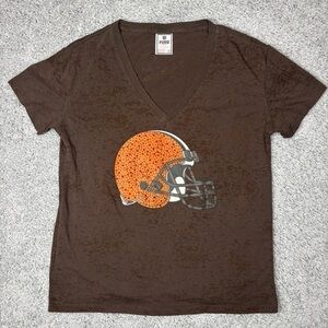 Cleveland Browns Shirt Womens Medium Vneck Tee Football Helmet NFL Burnout Party