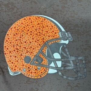 Cleveland Browns X Pink Shirt - Vneck Tee - Football Helmet - Rhinestones - Short Sleeve - Casual - Burnout - Party - Night Out - NFL -