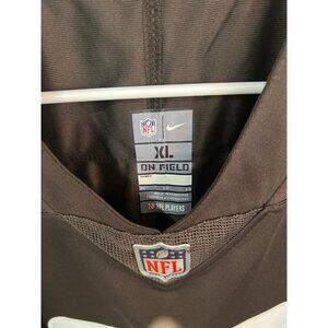 Design: The jersey is part of the Browns' 75th-anniversary uniform collection, first unveiled in the 2021 NFL season. It features brown numbers shadowboxed with an orange outline, which pays homage to the uniforms worn during the team's first season in 1946.