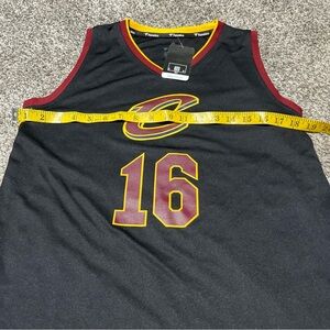 The product is a Fanatics Cleveland Cavaliers #16 Cedi Osman youth XL black basketball jersey. This jersey represents the popular basketball player from the National Basketball Association (NBA) and features the iconic team logo of the Cleveland Cavaliers. Made for young fans, this jersey allows supporters to show their team pride while playing or watching basketball. With its high-quality construction and design, this jersey is a must-have for any young basketball enthusiast.