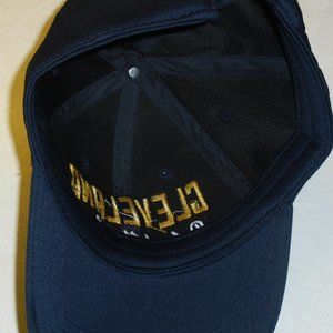 Brand New Mens Adjustable Strapback Cleveland Cavaliers Defend the Land hat. This hat is dark navy blue with the embroidered Cleveland in yellow and Defend the Land in white. Made of polyester material.