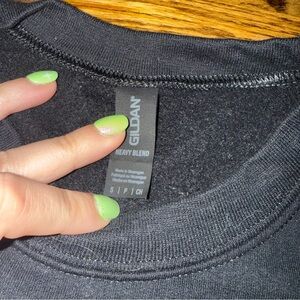 Black crewneck sweatshirt with old school Orange and Blue colors.