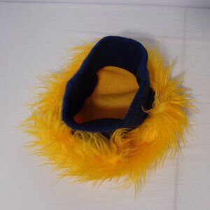 Made from faux fur material, this lightweight and packable hat features a solid yellow color with a flair hair style, perfect for casual or party occasions.