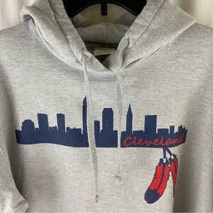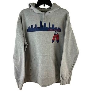 Port & Company ring spun Fan Favorite warm and cozy gray hoodie with the Cleveland city skyline and Chief Wahoo feathers. Soft cotton poly blend. Men’s size extra large. Excellent preowned condition. Clean, smoke free home. Five star seller. Super fast shipping!