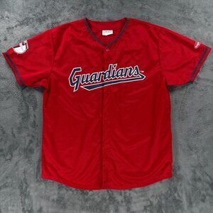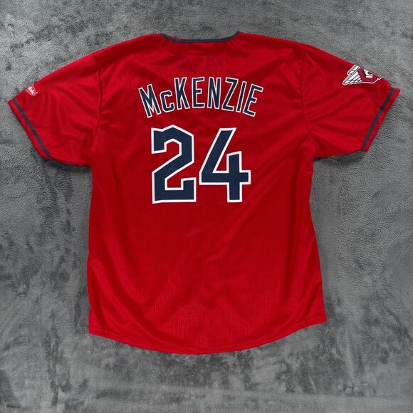 Cleveland Guardians Baseball Jersey Mens XL Extra Large Red Mesh Sugardale Sleeve Patch McKenzie 24 Name Number Shane Bieber MLB Fan Apparel Button Up Short Sleeve Poly Polyester Spandex Athletic Sportswear