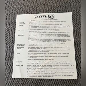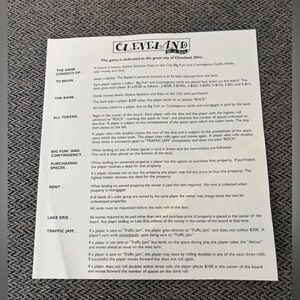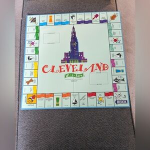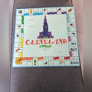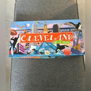 Cleveland In A Box Board Game, never used. Comes with the instructions. This is a Monopoly-like game. Very slight wear to the corners of the box and very slight warping of the side of the front of the box due to storage (see photos). Great gift for someone who loves Cleveland!