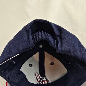 Classic Cleveland Indians infant cap with the iconic Chief Wahoo logo embroidered on front. Navy crown, red brim, and elastic stretch back.