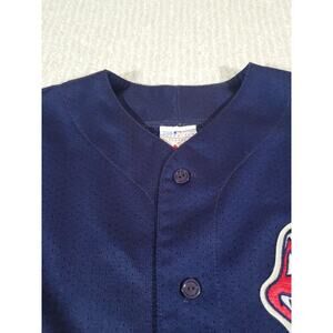 Show your support for the Cleveland Indians with this Majestic size LG short sleeve button down crew neck jersey. Perfect for any fan of the Major League Baseball team, this blue jersey is made in the United States and features the team's iconic logo. Whether you're heading to the game or just want to show off your team spirit, this jersey is a must-have for any Cleveland Indians fan.