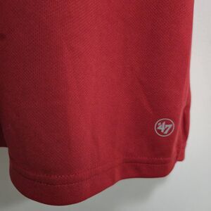 Step up your game day ensemble with the Cleveland Indians Men's Polo, a versatile and stylish addition to any fan's wardrobe. Crafted by '47 Brand, this red polo shirt features a crisp, embroidered team logo, showcasing your allegiance with class. The knit fabric construction offers a comfortable stretch fit, making it ideal for a range of activities from golf to baseball. Sized at 2XL with a generous 50-inch chest and a 29-inch shirt length, this polo ensures a relaxed and regular fit. The short sleeves, spread collar, and button closure combine for a classic look, perfect for both casual outings and sports-themed events. Care is a breeze, toomachine washable for convenience. #9869