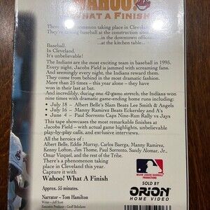 The Cleveland Indians "WAHOO! What A Finish" 1995 VHS MLB Jacob's Field Art Brand New is a must-have for any Indians fan. This brand new, sealed VHS features the thrilling finish to the 1995 season and an art style that is unique to Jacob's Field. Get your vintage piece of Indians history today!