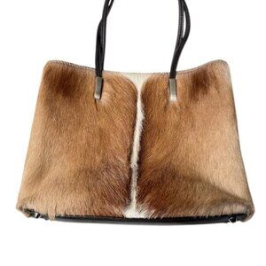 Elevate your style with this chic shoulder bag featuring a luxurious fur design in brown and white. Perfect for any occasion.