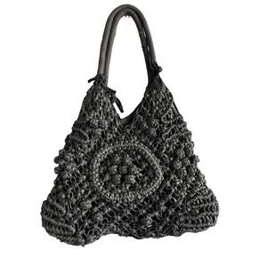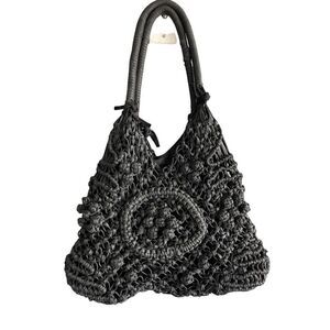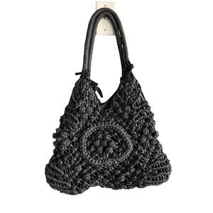 Clever Carriage Company Womens Black Crocheted Positano Hand Macrame Satchel Bag