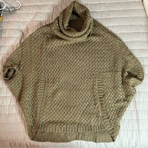 Cliché Couture tan turtleneck poncho cape sweater with arm openings. Material as shown in photos. Size medium.