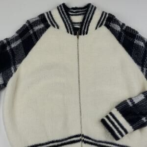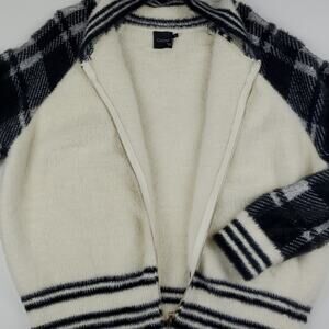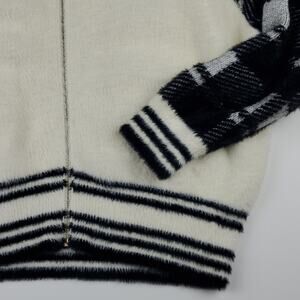 Cliché Faux Fur Zipper Front Plaid Long Sleeved Soft Fuzzy Sweater Jacket Coat Women's Size Large