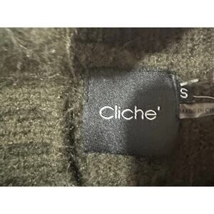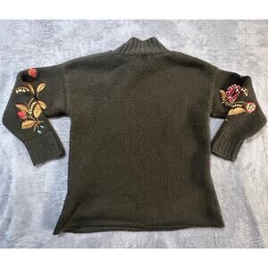 Cliché Olive Green Floral Embroidered Sweater Women’s Small Mock Neck Boho