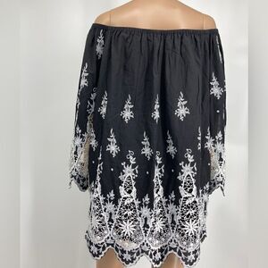 Cliche Off the Shoulder Floral Embroidered Lace Mini Dress Size M Black/White
