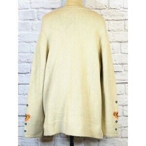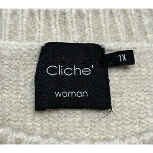 Cliche Womens Floral Embroidered Wool Blend Beige Sweater Fuzzy Knit Curvy 1X