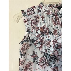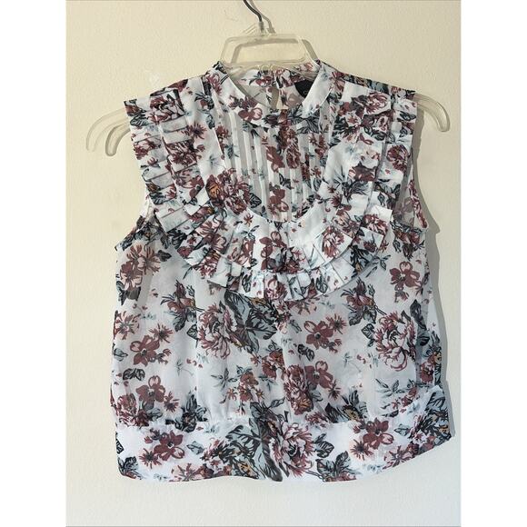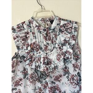 Cliche Y2K Ruffle Floral Flower Sheer Open Back Blouse Shirt Womens Small