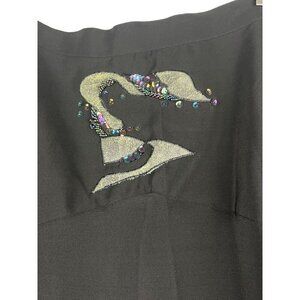 This vintage silk skirt offers timeless elegance with its classic black hue and beautiful drape. Perfect for various occasions, it provides a flattering fit for size 12, enhancing any wardrobe with a touch of sophistication.
