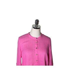 Click CMC Top Women's Size Large Pink Button Up Long Sleeve 100% Linen
