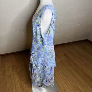 Click Color Me Cotton Floral Tiered Dress Womens Size XXL Blue Asymmetrical