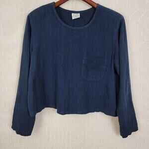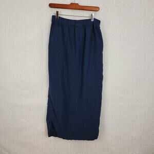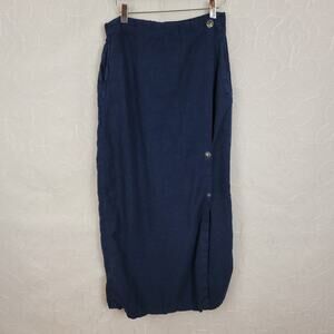 Click Color Me Cotton Linen Wrap Skirt S Navy Blue Pockets Lagenlook Straight