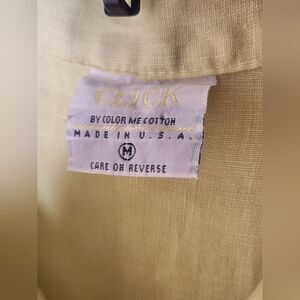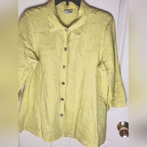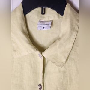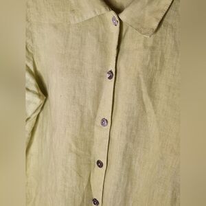 Click by Color me M LemonGreen 3/4 Sleeve Buttons Plit Back 100% LINEN Buttons Up Women's Shirt