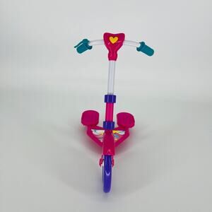 An amazing gift for every girl. Let your 18 inch doll ride around town on her very own scooter! This hot pink doll scooter has a front wheel and two smaller back wheels. On top of the back wheels there are two platforms for your doll to place her feet on