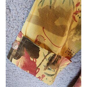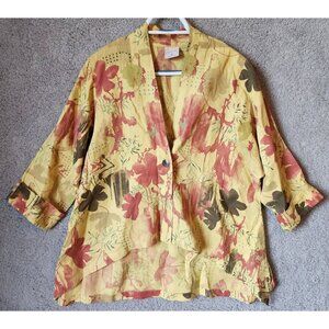 Click by Color Me Cotton Hi Low Jacket Top Yellow Floral 100% Linen Lagenlook M