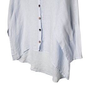 Click by Color Me Cotton Linen Button Down Top High Low Hem Blue L Sustainable