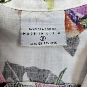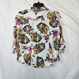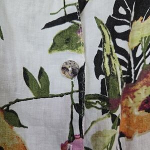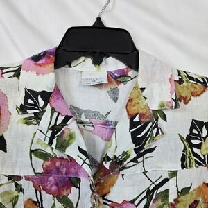 Click by Color Me Cotton Women White Floral 3/4 Sleeve Button Down Linen Shirt S