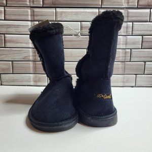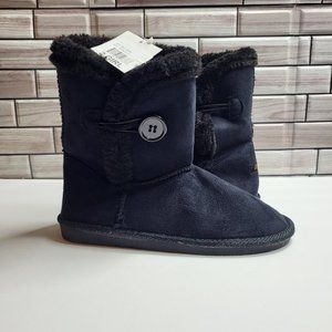 New US Sport Girls Black Boots Size 2 Moccasin Style Fur Button Comfy Warm Shoe