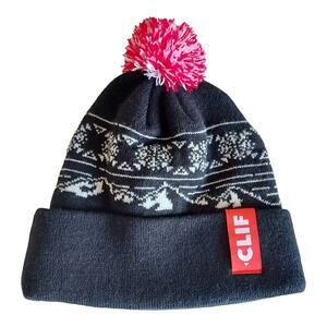 Clif Pom Knit Cuffed Blue Black Winter Ski Snow Beanie Hat 2 pc Bundle Set