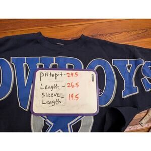 Cliff Engle VTG Dallas Cowboys Blue 80s Big Spell-out Cropped Crewneck XL. The sweatshirt was probably originally an XL before being chopped. The size tag is missing and the measurments are in the pictures.