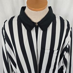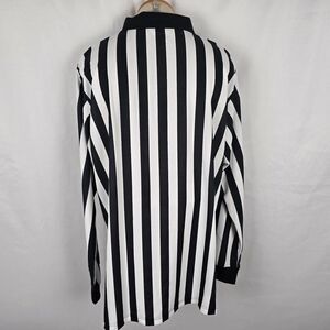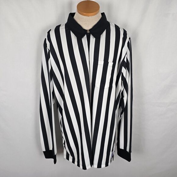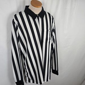 Cliff Keen Athletic Referee Shirt Men's XXL Black White Stripe Long Sleeve Zip