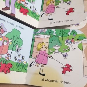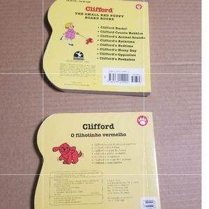 Set of 2 children's board books about the big red dog, Clifford, in English and in Portuguese. "Clifford Barks!" in English & "Clifford e seus latidos" in Portuguese (Português)