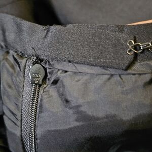 This Clifford Michael women's maxi skirt is crafted from 100% silk in a solid black color, featuring a long length and a hook & eye closure. The skirt is size 16 and is suitable for various occasions such as weddings, parties, formal events, or workwear. It has a modest and luxe style with a touch of gothic inspiration, making it a versatile piece for winter, fall, and spring seasons. The skirt is lined and full, adding to its luxurious feel, and it is designed by the Canadian brand Clifford Michael.