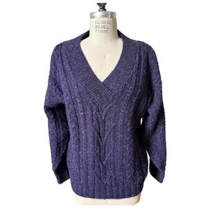 Clifford & Wills Purple V-Neck Oversized Cable Knit Sweater Size Small