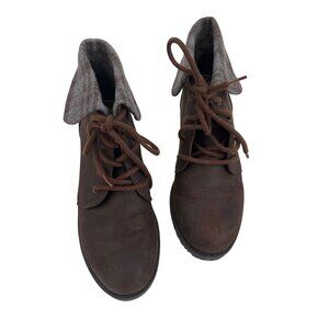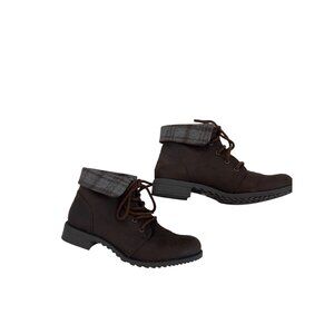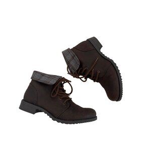 Cliffs By White Mountain Brown Ankle Booties With Fold-Over Plaid Cuff