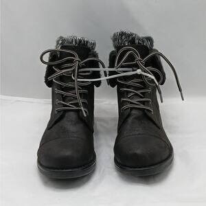 Cliffs By White Mountain Duena Hiking Boot Women's 6W Black Faux Leather Lace Up Gorpcore Shoes.