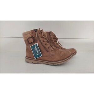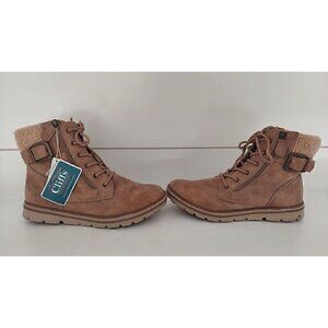 The Cliffs by White Mountain Kelsie bootie can make a serious fashion statement. In a classic hiker silhouette, this lace-up boot features attractive buckle and sweater detailing, cozy cushioned insole and lightweight lug sole with slight heel.
