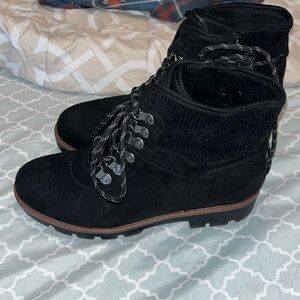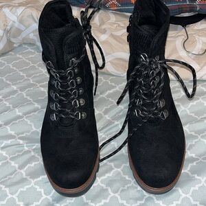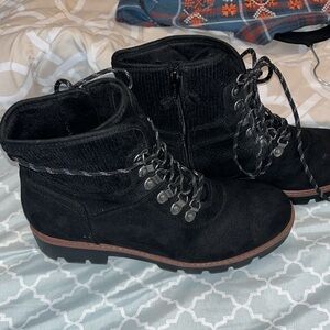 Cliffs by White Mountain Gwen boots black suede ankle boots side zip closure with laces thick, cushy soles color: black size: 9 1/2 M