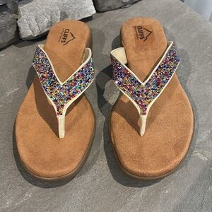 Cliffs White Mountain Suede upper,memory foam insole,bedazzled rhinestone thong