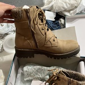 This boots have never been worn or used. Wool ankle fabric and suede. Still in box with original tags.