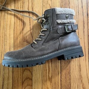 Gently used women’s faux fur lined boots in dark brown.